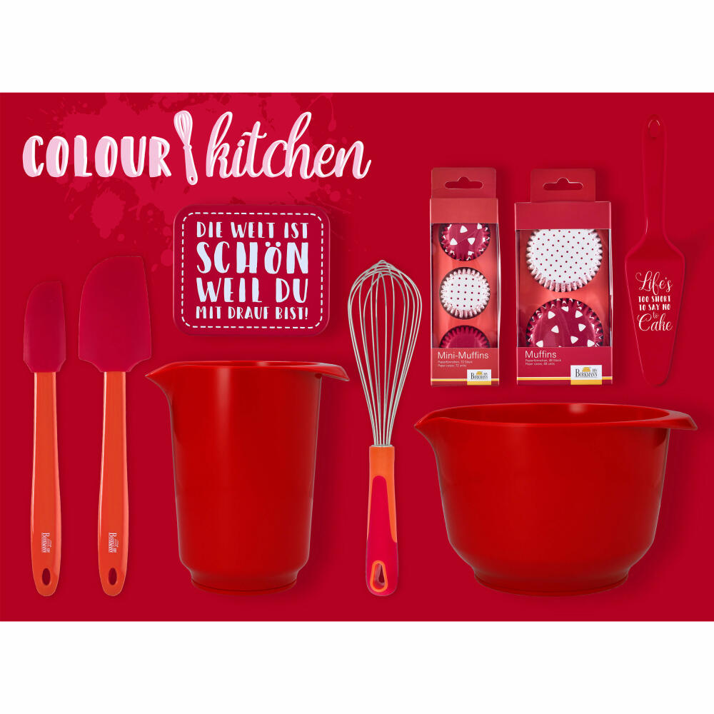 Discover the colorful variety and browse through the powerful colors, e.g. rose, gray, turquoise, red and lime, and different sizes! The mixing cups and bowls are available with a capacity of 0.5/ 1/1.5/2/3 and 4 liters. Which is your favorite?