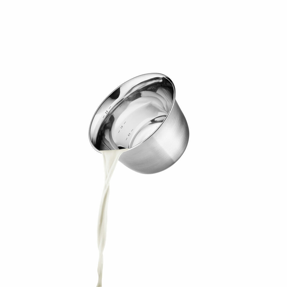 Verwenden Sie die Rührschüssel zum Mischen, Wenden, Kneten und Aufbewahren von Zutaten und Lebensmitteln. Die Schüssel besteht aus 90 Prozent Post-Consumer-Recycling-Edelstahl und ist daher langlebig und widerstandsfähig gegen Stöße, Kratzer und Dellen. Sie kann problemlos mit Handmixern, Schneebesen und anderen Metallutensilien verwendet werden. Der Gummiring an der Unterseite sorgt dafür, dass die Schüssel stabil auf der Arbeitsfläche steht. Mit dem gerundeten Boden und den hohen Seiten eignet sich die Schüssel hervorragend zum Schlagen von Zutaten, und da die Schüssel sowohl hohen als auch niedrigen Temperaturen standhält, kann sie auch problemlos für Wasserbäder oder zum Abkühlen von Zutaten verwendet werden. Auch zum Aufbewahren von Speisen ist diese Schüssel ideal, da Edelstahl nicht mit sauren oder basischen Lebensmitteln reagiert. Die Skalenmarkierung an der Innenseite erleichtert das Abmessen von Zutaten direkt in der Schüssel, die darüber hinaus spülmaschinengeeignet ist und sich platzsparend im Küchenschrank stapeln lässt.