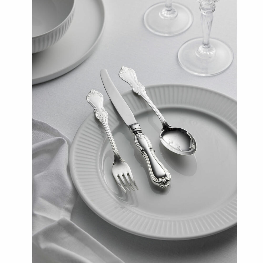 Die Serie Olga hat ihren Ursprung im englischen Neo-Rokoko aus dem 19. Jahrhundert. Das Besteck ist so entworfen, dass es zu den üppigen Tischdekorationen der damaligen Zeit mit Kristallglas und raffiniert gefalteten Servietten passt. Und es sieht auch heute noch fantastisch aus - unabhängig vom Stil und der übrigen Umgebung. Mit den lebendigen Blattmustern ist es ein Design, das Form annimmt und zu einem Gesprächsthema am Tisch wird.