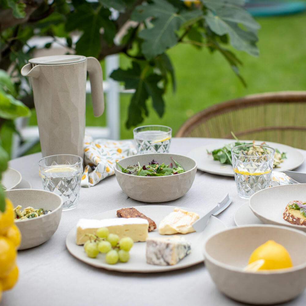 The universal plate for garden parties, picnics or glamping and all occasions that preferably take place outside. The outside has a lively faceted structure and its solid quality and wide base give you the good feeling of high-quality dining anytime and anywhere. Ideal for all outdoor activities where you don't want to go without stylish tableware.