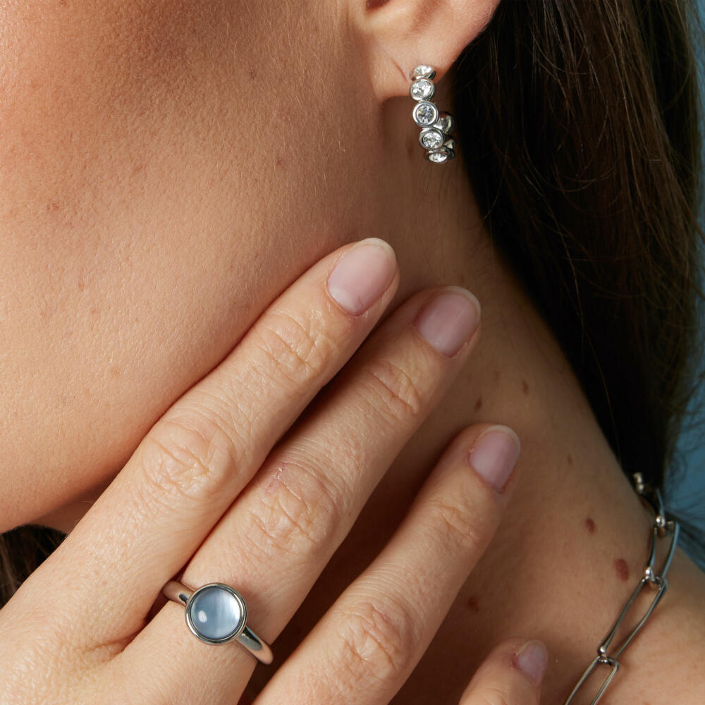 Small but beautiful - this is the motto of the stud earrings. Similar to the bracelet, the memoire-style creole earrings also feature white zirconia stones. With their delicate, sparkling look, the stud earrings can be combined with a variety of styles - from elegant to classic.