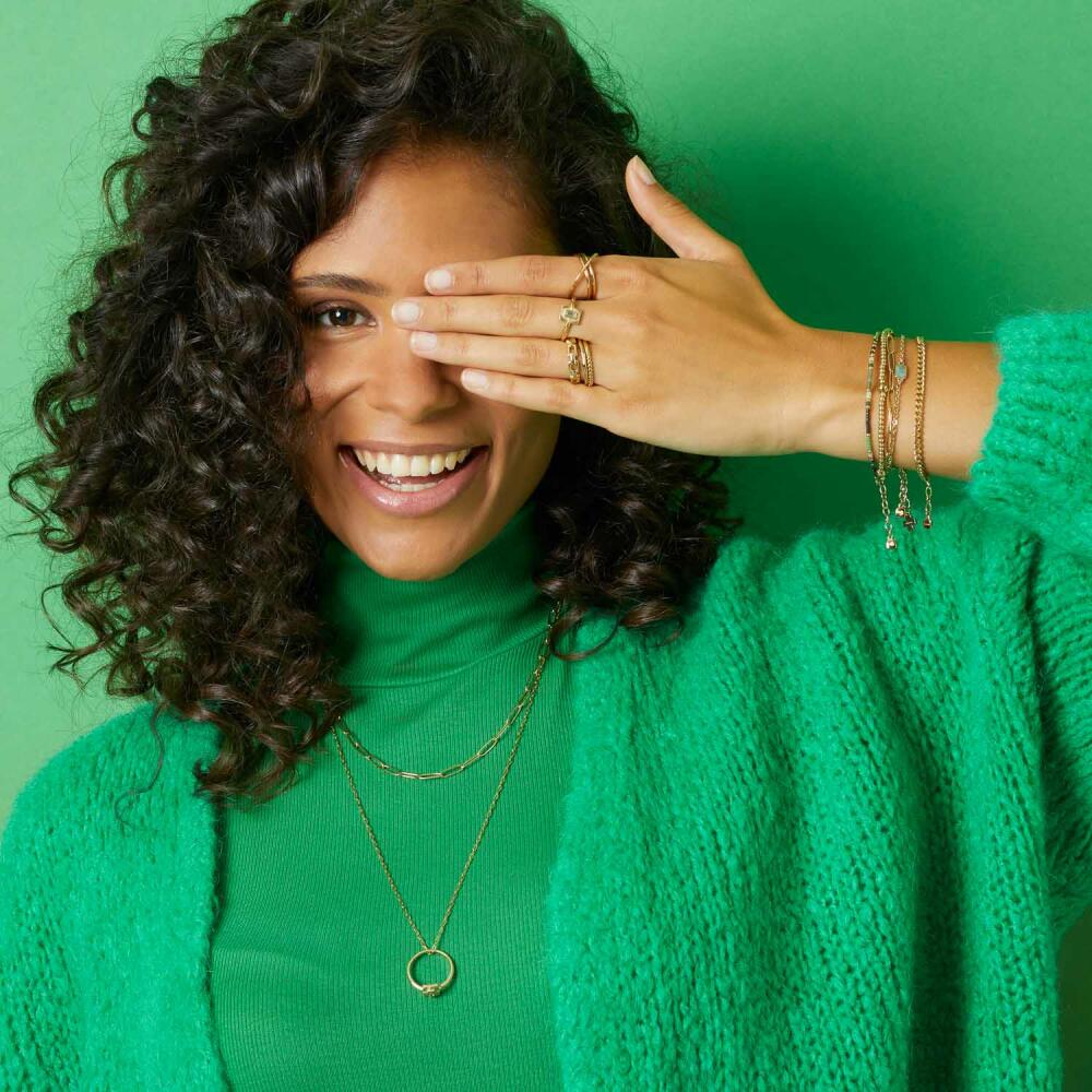 Static movement: This filigree ring made of gold ion-plated stainless steel consists of three fine rails. The sophisticated thing about it is the criss-cross design, which gives the gold-plated stainless steel ring a dynamic and therefore absolutely exciting look.