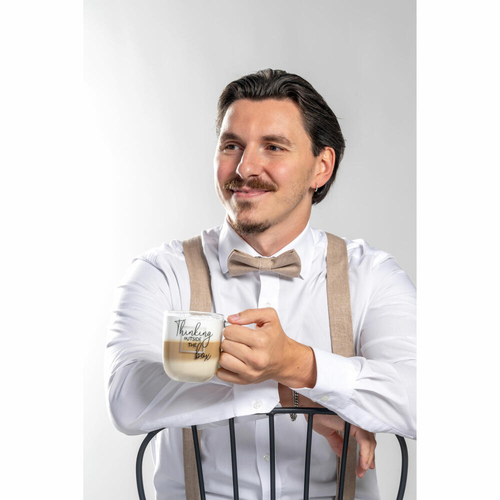Discover the beautiful glass mug with the inspiring saying Thinking outside the box. Perfect as a gift for creative thinkers and visionaries who always think outside the box. The black lettering gives the mug a timeless elegance, while the glass design exudes a modern yet classic flair. Whether it's morning coffee or evening tea, this mug will make every moment a stimulus for innovative ideas. Bring style to your loved ones' everyday lives or reward yourself with this unique glass mug. Think outside the norm - order now and experience enjoyment with inspiration.