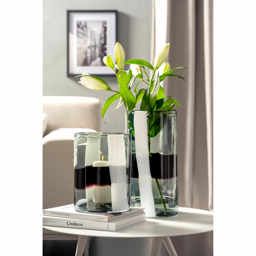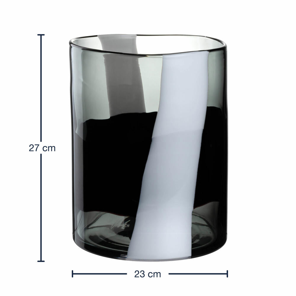 Entdecke die faszinierende Vase BANDA NERA! Handgearbeitetes Glas verschmilzt hier zu einem Kunstwerk, das deine Sinne verführt. Ob mit üppigen Blumen oder allein, sie ist stets ein Blickfang. Doch BANDA NERA ist mehr als eine Vase - sie ist eine leidenschaftliche Love-Affäre mit Ästhetik und Handwerkskunst. Jede Vase ist ein Unikat, einzigartig wie du. Tauche ein in die Welt des Designs und der Eleganz. Verleihe deinem Zuhause mit BANDA NERA einen Hauch von Exklusivität. Nutze sie auch als Windlicht und lass ihr warmes Licht deine Räume erhellen. Gönn dir das Besondere!