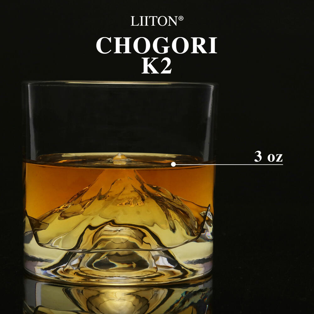 Liiton whiskey glasses allow you to enjoy something a little different on the rocks: instead of the usual glass bottom, Liiton's tasty drink pours over the glass-encased rock massifs of the world's most famous mountains. But the thick glass bottom is not just a visual highlight. Thanks to the patented Chill Charge System, the glass made of lead-free X1 Crystalline can be comfortably cooled in the freezer in under 18 seconds. Instead of diluting ice cubes or additional pebbles and stainless steel cubes, Liiton's glass itself cools the whiskey. The set contains two glasses with the K2 mountain motif.