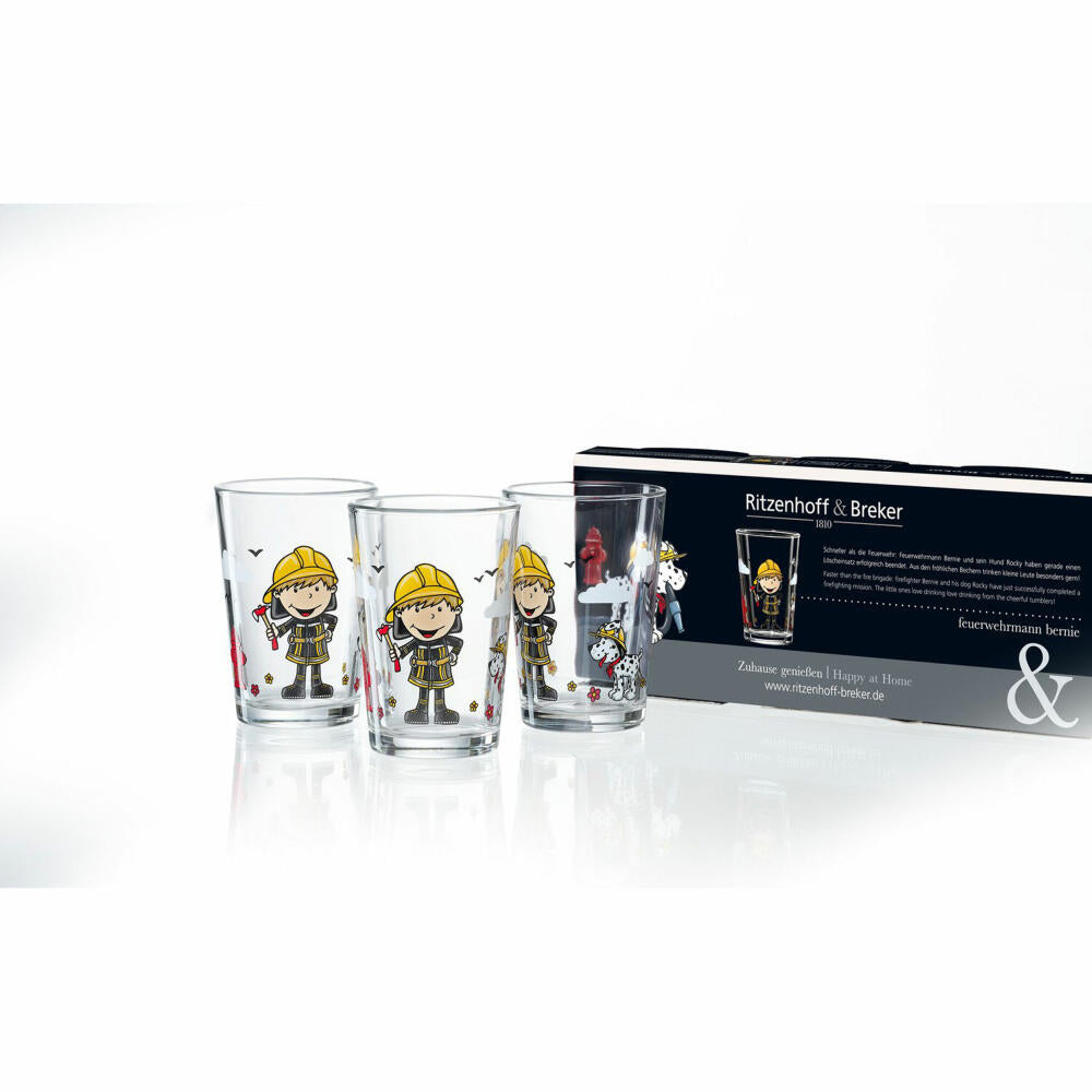 Ritzenhoff & Breker Fireman Bernie Children's Drinking Mug, 3-piece, Drinking Glass, Water Glass, Children, Glass, 205 ml, 818857