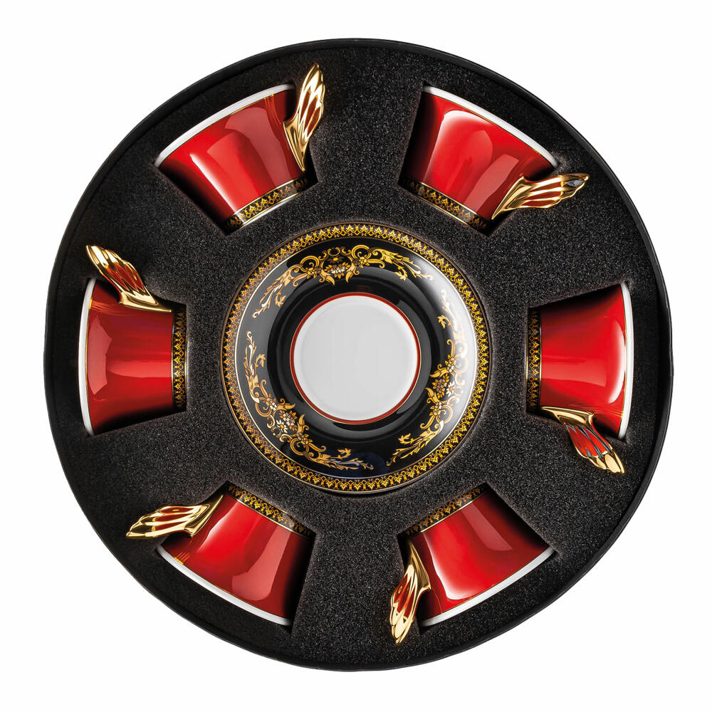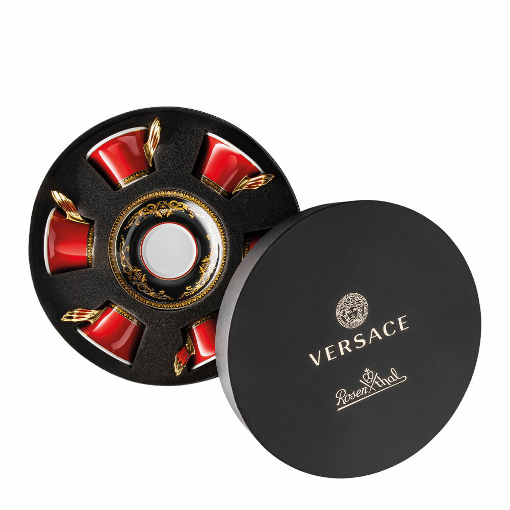 Like no other, the Italian fashion designer Gianni Versace has been able to create extravagant, imaginative and colorful product and living environments. His name stands internationally for pure luxury - for the sophisticated interplay between classic and avant-garde. Through his cooperation with Rosenthal, the creative fashion designer has also transferred his expressive, imaginative design ideas to the areas of table culture and furnishing accessories made of high-quality porcelain and crystal glass. One of the first services of the Rosenthal meets Versace brand, the Medusa decor by Gianni Versace on the Icarus form reflects the inimitably rich, colorful world of Versace like no other. The central eye-catcher of this collection is a magnificent gold-colored Medusa head, an unmistakable Versace symbol, framed by expressive baroque decorations. The Medusa head adorns - centrally placed - all cups and jugs, placemats and bread plates in the Medusa collection. Truly aristocratic colors - bright red, noble gold and black - and elaborately filigree patterns and ornaments give the Medusa head a colorful, incredibly elegant frame.