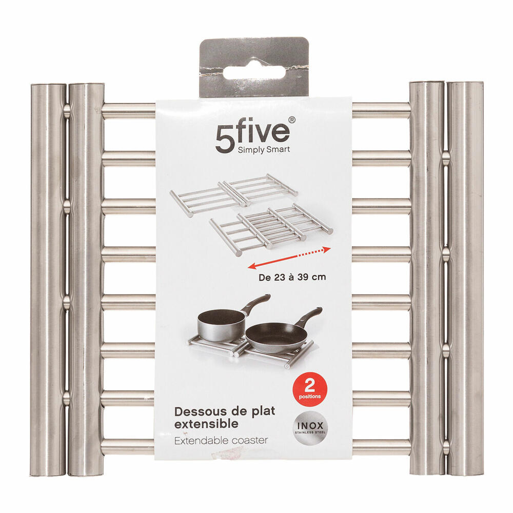 5five Simply Smart Ausklappbarer Topfuntersetzer, Unterlage, Edelstahl, PP-Kunststoff, Silberfarben, 23-39 cm, 115178