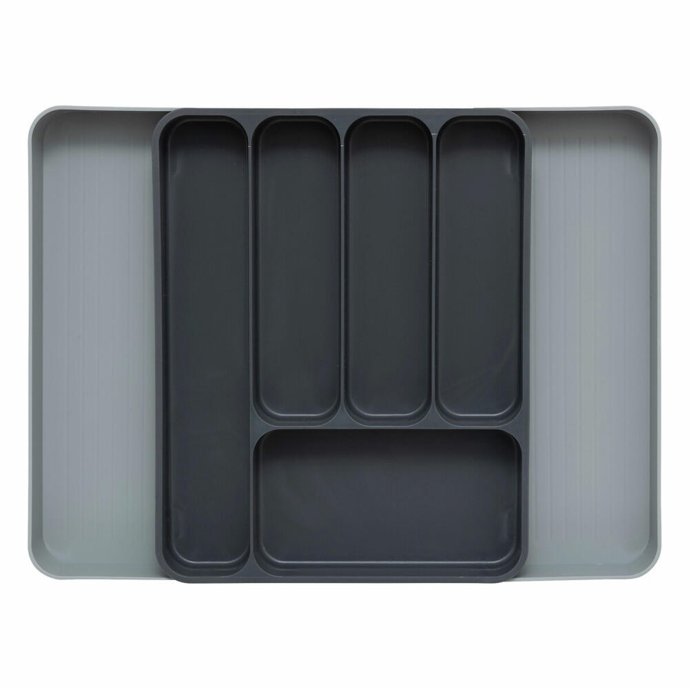 5five Simply Smart Ausziehbarer Besteckkasten, Schubladeneinsatz, Besteck Kasten, Kunststoff, Grau, 189969