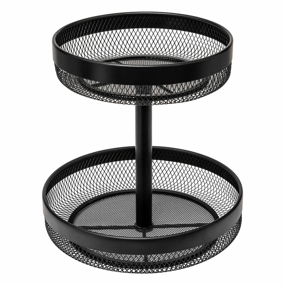 Präsentieren Sie Ihr Obst auf elegante Weise mit diesem zweistufigen Korb aus schwarzem Metall.