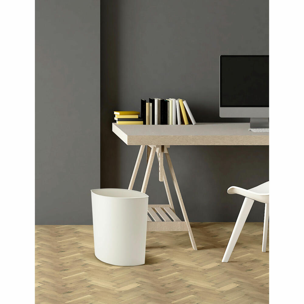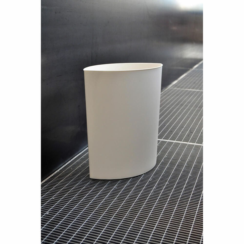 Elliptischer Papierkorb aus Kunststoff. Aufgrund seines schmalen Querschnitts lässt er sich besonders gut unter Schreibtische oder Arbeitsflächen stellen. So bleibt immer genügend Raum - selbst für ausgestreckte Beine.