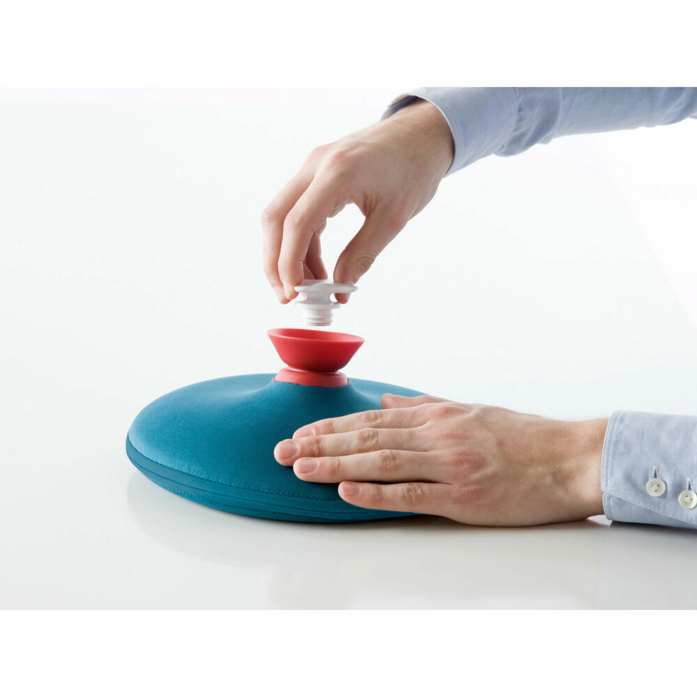 Archetypisch erinnert PILL an die ovalrunden Metallwärmflaschen aus alten vergangenen Zeiten. PILL besteht aus einem hitzebeständigen, gummiartigen Kunststoff und lässt sich durch den herausziehbaren Trichter einfach und sicher befüllen. Der Drehverschluss mit griffigem Kreuz aus Nylon verschließt die Flasche leicht und zuverlässig. Der Trichter wird einfach in die Wärmflasche hineingedrückt und vollständig versenkt.