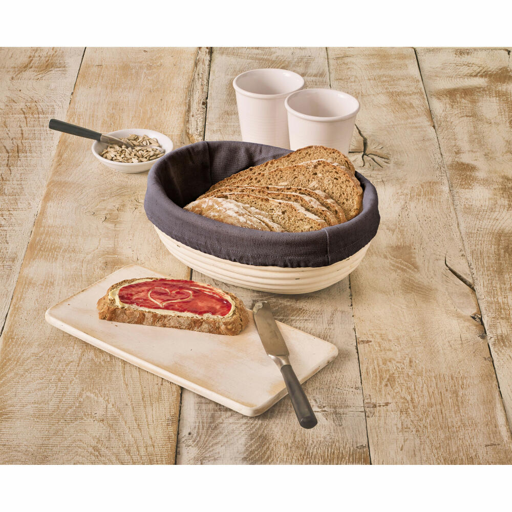 Dekorativer Bezug aus 100% Baumwolle. So kann ein Gärkörbchen auch als Brotkorb verwendet werden.