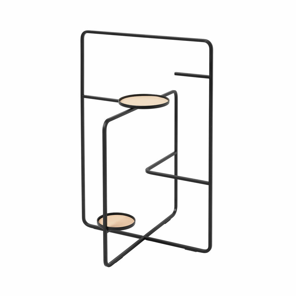 Schmucke Sache: Die von Justyna Poplaswska entworfene Schmuckablage CASTEA sorgt für Ordnung. Halsketten in verschiedenen Längen, Armbänder und Uhren finden an dem matt schwarz pulverbeschichteten Ständer stilvoll einen Platz. Die drei intergierten Ablagen für Ringe, Ohrringe und Haarbänder sind mit eleganten braunen Lederunterlagen versehen. Rutschfeste Gumminoppen an den Füßen des Gestells schützen empfindliche Oberflächen.