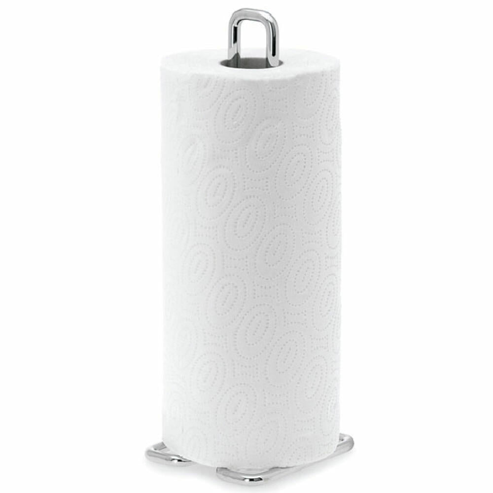 Der Küchenrollenhalter aus verchromtem Metalldraht hält die Küchenrolle immer ordentlich griffbereit.