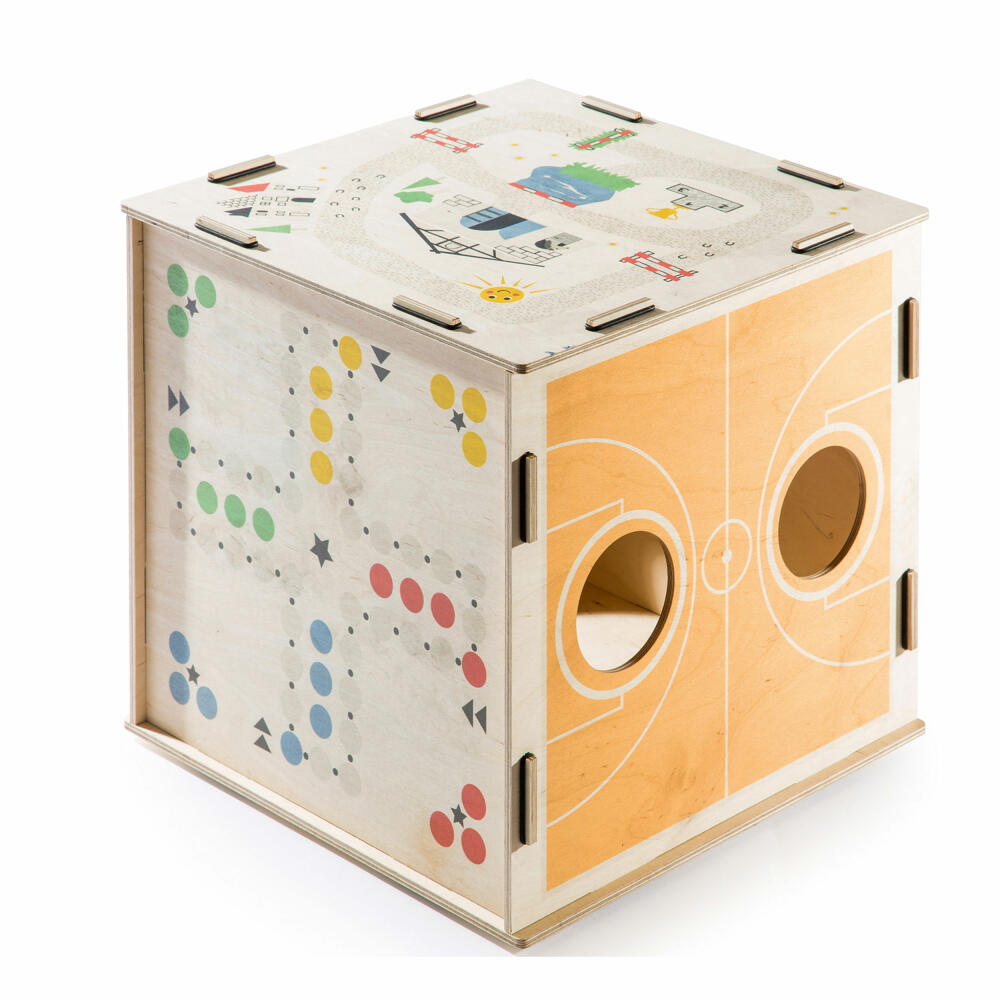 35 cm Durchmesser, sechs Spiele, Sitzgelegenheit und Sammelbox. Der Kids Qube aus Deutschland ist das neuste Multitalent im Kinderzimmer.