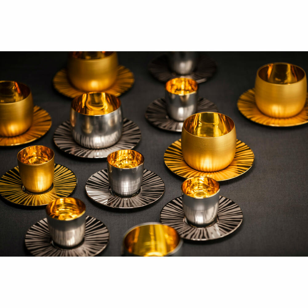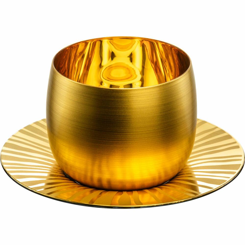 • 1 EISCH Cappuccino-Glas mit Untersetzer Cosmo Collect sun/ gold, mit 24karätigem Gold, außen matt, innen glänzend, Teller mit goldenen Sonnenstrahlen