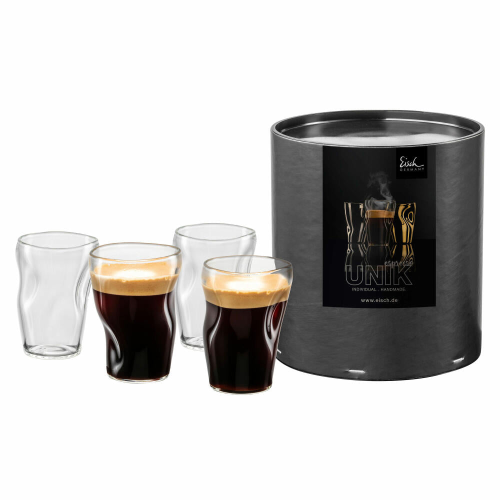 • 4 Eisch Espresso-Gläser UNIK werden in einer attraktiven Geschenk-Röhre geliefert