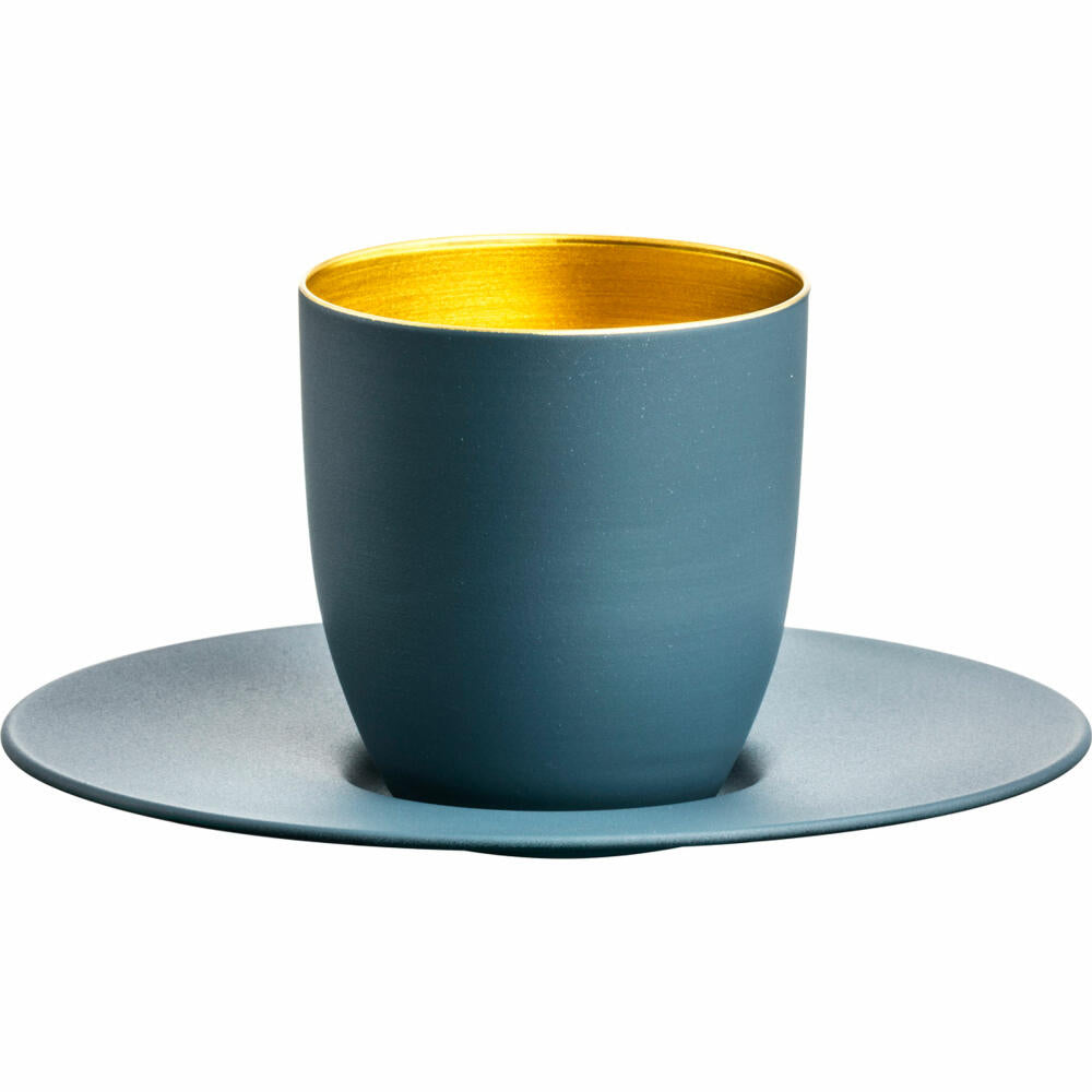 • 1 EISCH Espresso-Glas mit Untersetzer Cosmo Collect petrol, innen zart goldschimmernd, außen matt petrol