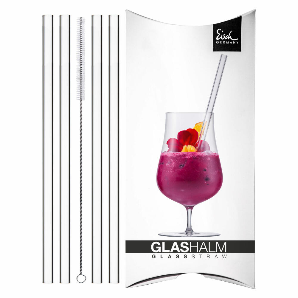 Eisch Glashalm 4er Set Gentleman mit Bürste, Glastrinkhalme, Glas, 20 cm, 86599810