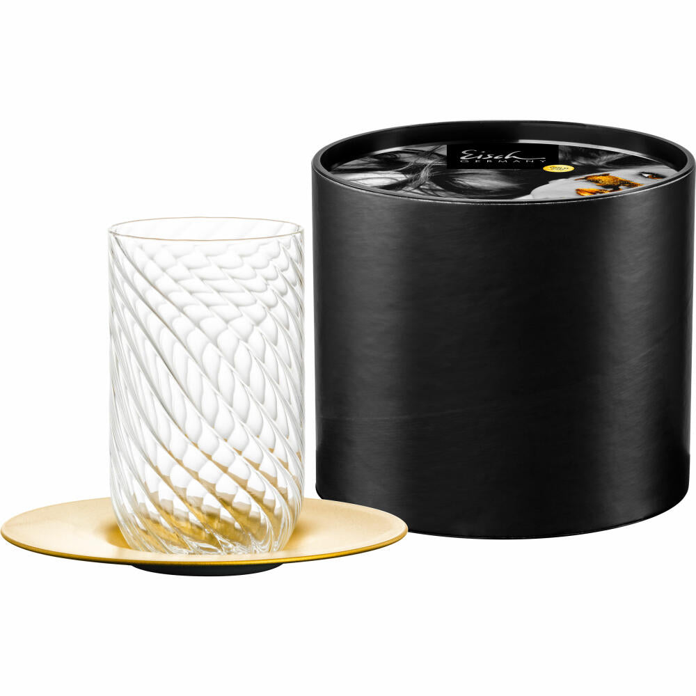 Eisch Latte Macchiato Glas Twist, mit Untertasse, Kaffeeglas, Kaffeebecher, Glas, Gold, 360 ml, 78913321