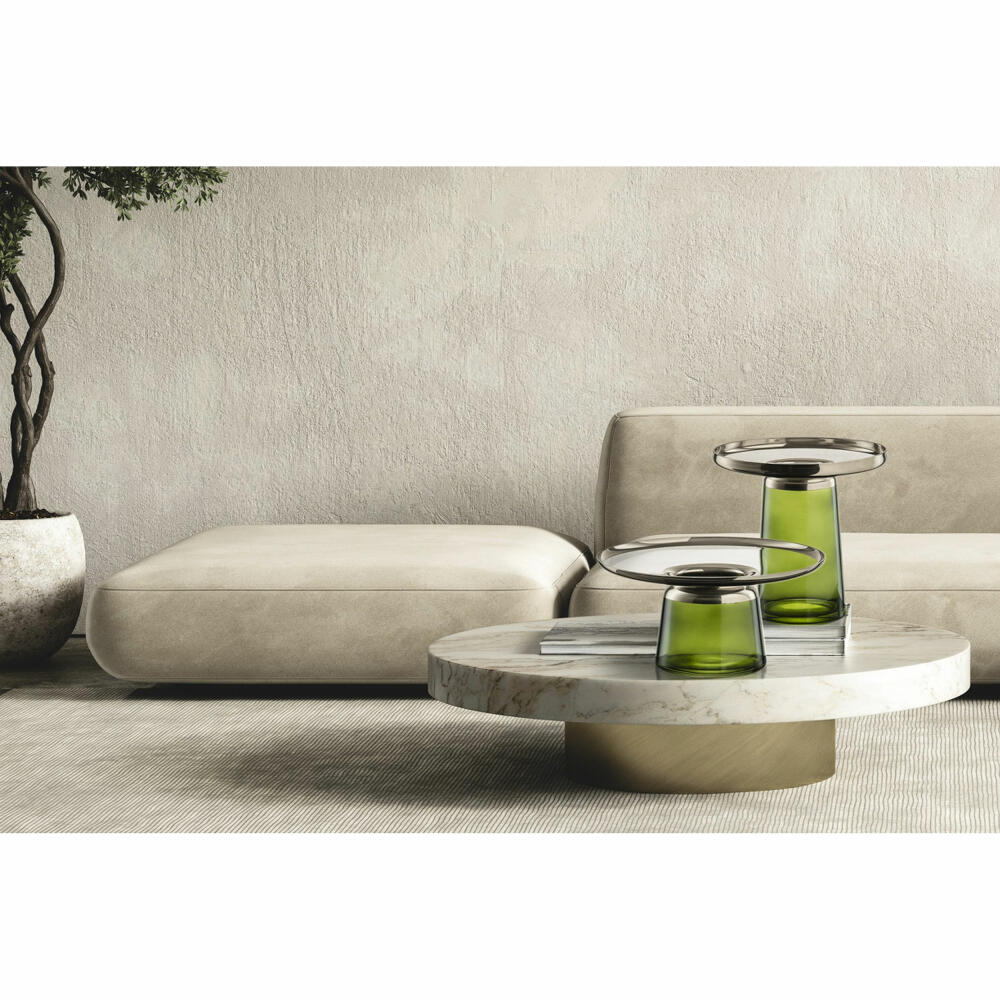 Die mundgeblasenen Vasen Liv sind die Perfekte Symbiose aus zeitgenössischem Design und zeitloser Eleganz. Echtes Platin, in Handarbeit aufgetragen, macht die Design-Objekte zu exklusiven Statement-Pieces für alle, die das Besondere lieben und schätzen. Ergänzt werden die Centerpieces mit den passenden Tellern, um einer Tafel einen hocheleganten und harmonischen Look zu verleihen