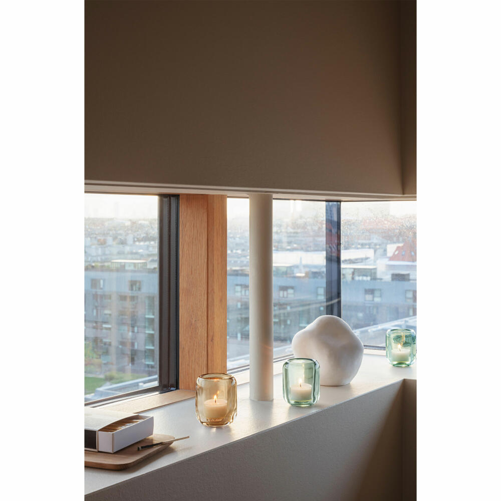 Dieser elegante Kerzenhalter aus durchgefärbtem Glas erhellt die dunkle Jahreszeit auf schönste Weise. Sorgen Sie entweder mit einem einzelnen Kerzenhalter für echte Hygge oder setzen Sie mehrere Kerzenhalter zusammen. Der Kerzenhalter hält dem Alltag problemlos stand, er steht stabil und ist spülmaschinenfest.