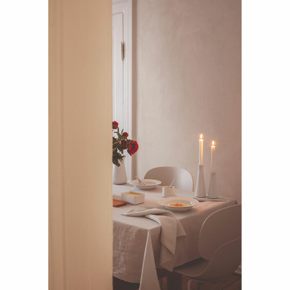 Diese elegante Butterdose aus weißem Porzellan mit Rillenmuster und einem Deckel aus geöltem Eichenholz ist das i-Tüpfelchen auf jedem schön gedeckten Frühstückstisch. Mit der Butterdose, die auf eine Standardpackung ausgelegt ist, lässt sich Butter dekorativ und hygienisch aufbewahren. Damit ist Schluss mit fettigem Verpackungspapier im Kühlschrank! Auch ideal zum Servieren von Kleinigkeiten wie Snacks oder Süßigkeiten. Die Schale ist spülmaschinenfest, der Deckel darf nur mit einem ausgewrungenen Tuch abgewischt werden. Pflegen Sie den Deckel durch regelmäßiges Einölen.