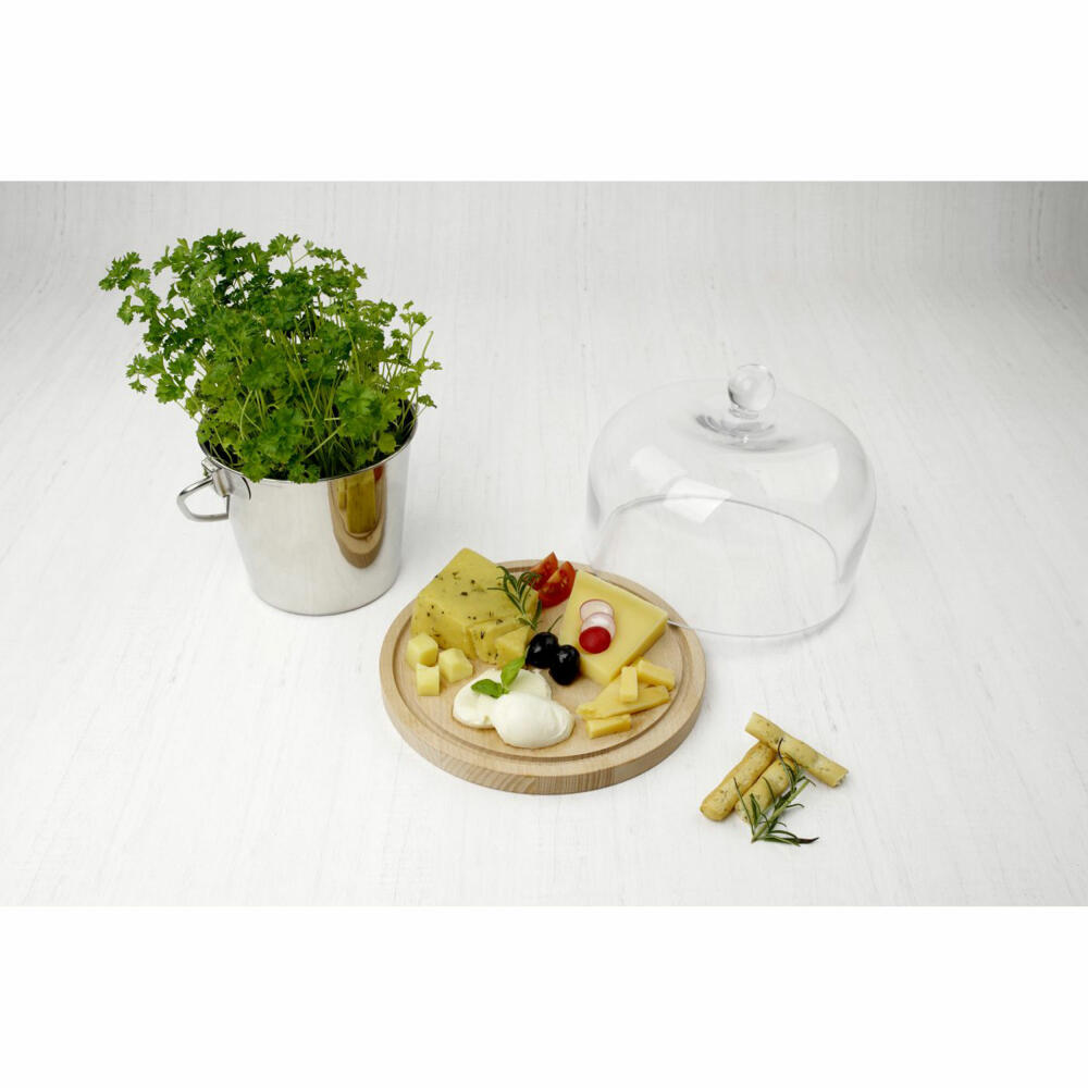 Fackelmann Käseglocke Nature, Käseplatte mit Glasglocke, Buche, Glas, 18 x 14 cm, 31035