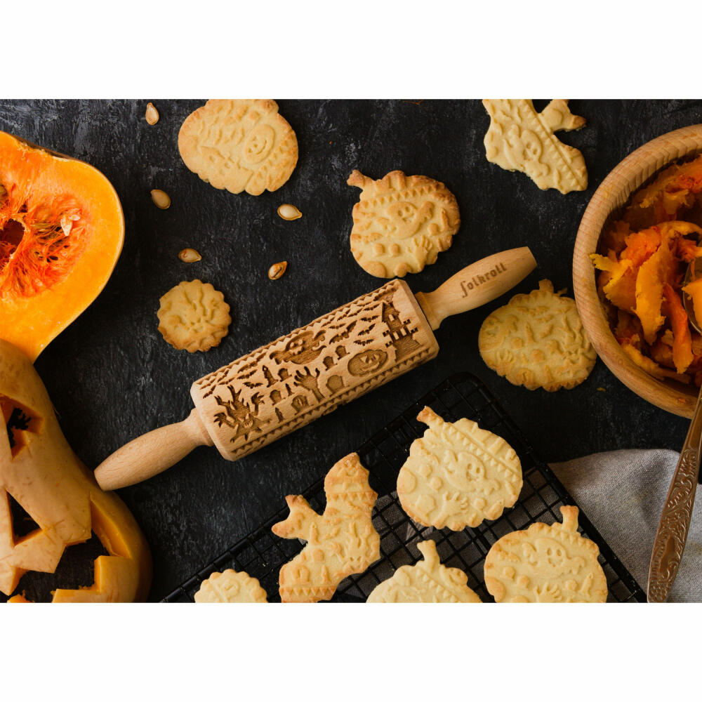 Folkroll Teigrolle Spooky Halloween, junior, 23 cm, Nudelholz, Prägerolle, Muster, Motiv, Rolle, Buchenholz, 334911