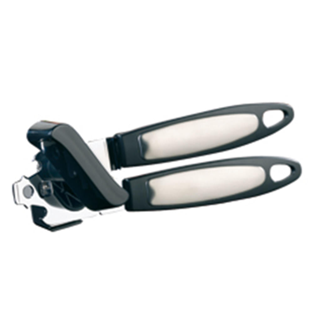 Der Zangen-Dosenöffner mit drehendem Schneidrad. Der Antrieb wird über das Flügelrad ausgeführt. Messer und Rädchen sind aus gehärtetem Stahl und sorgen für einen sauberen Schnitt.