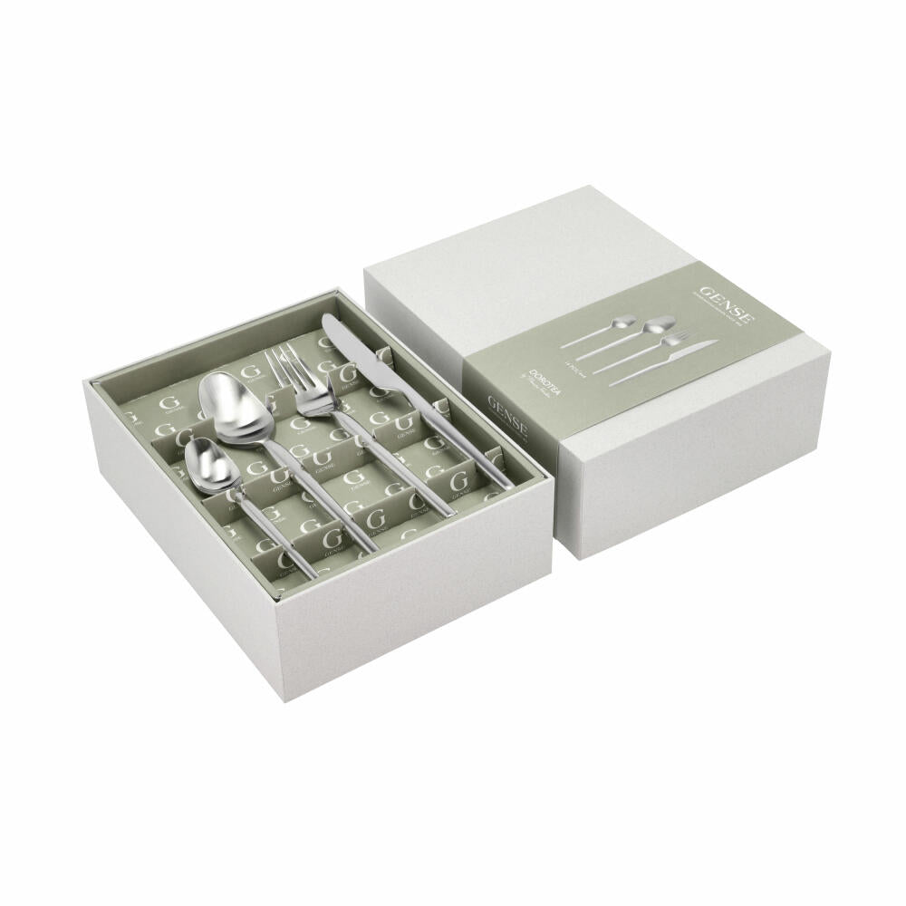 Mit der Besteckserie Dorotea hat Monica Förster einen modernen Klassiker aus matt poliertem Edelstahl geschaffen. Dorotea besticht durch einen markanten Ausdruck, der unverwechselbar, aber gleichzeitig harmonisch weich ist. Die formvollendete Ausgewogenheit des Bestecks verleiht jeder Tischdekoration Harmonie. Dorotea ist ein zeitloses Besteck, das die Tradition und Handwerkskunst von Gense mit Design auf internationalem Niveau kombiniert. Spülmaschinenfest.