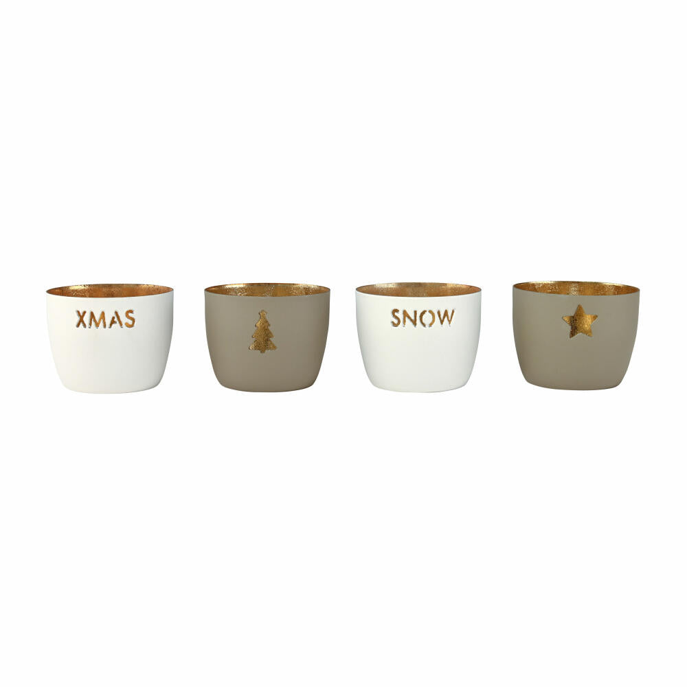 Gift Company Windlicht Madras X-mas Motive XS, 4er Set, Teelichthalter, Kerzenhalter, Eisen, Weiß / Flannel, H 4.5 cm, 1171402020
