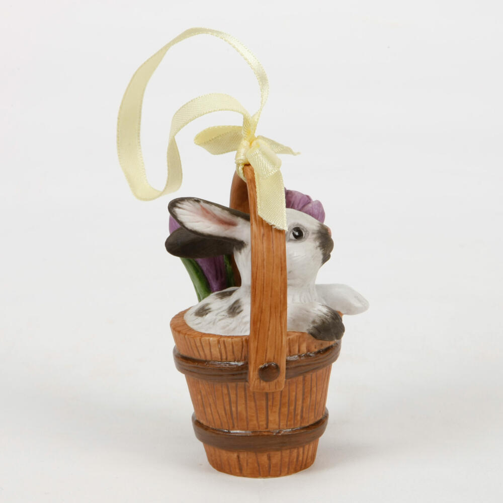 Vorwitzig schaut das schwarz-weiße Hasenkind aus dem Eimer / Zuber heraus. Egal ob an ihrem Osterkranz oder als Geschenk, das limitierte Goebel Jahresornament 2011 wird Sie entzücken!