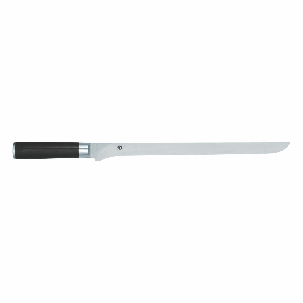 Das Schinkenmesser von Kai Shun Classic hat eine Klingenlänge von 30,5 cm. Dies ist optimal zum Schneiden hauchdünner Scheiben von großen Schinkenstücken, aber auch zum Filitieren von Fleisch und Fisch. Das Messer ist in Deutschland auch als Lachmesser bekannt.