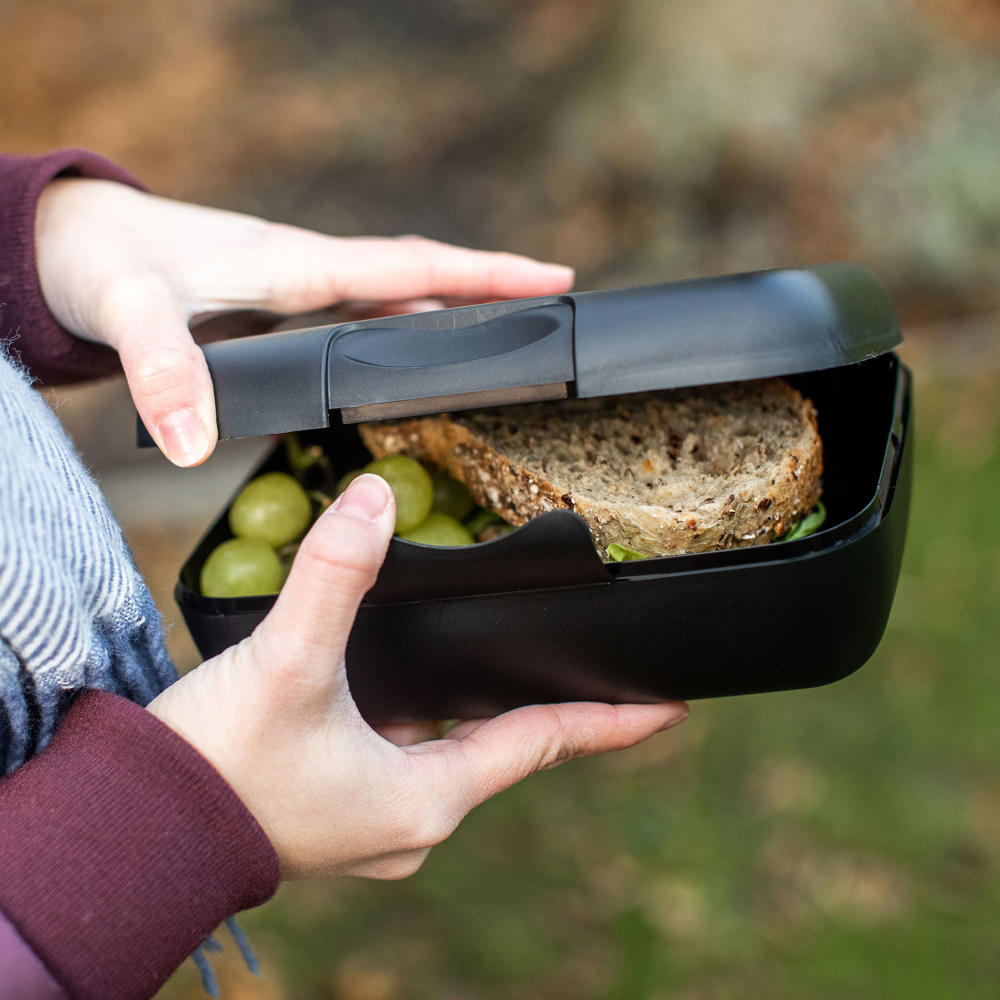 In der geräumigen Lunchbox CANDY L sind Brote, Snacks, Obst und sogar belegte Brötchen frisch und appetitlich aufbewahrt. Der Clipverschluss ist in der Form versenkt, so dass sich die Dose beim Transport nicht versehentlich öffnen kann. Die abgerundete Form ist ein haptisches Vergnügen und vermeidet lästiges Anecken beim Transport in der Tasche, im Rucksack oder im Auto. CANDY L wird aus dem neuen koziol Organic Material mit natürlicher Zellulose hergestellt: umweltfreundlich, lebensmittelecht, 100% recycelbar, ohne Formaldehyd oder BPA. Dazu ist es extrem langlebig, robust und natürlich spülmaschinenfest. Die Herstellung in Deutschland ermöglicht zudem eine aktive Reduktion von CO² durch kurze Transportwege und den Einsatz von Ökostrom.