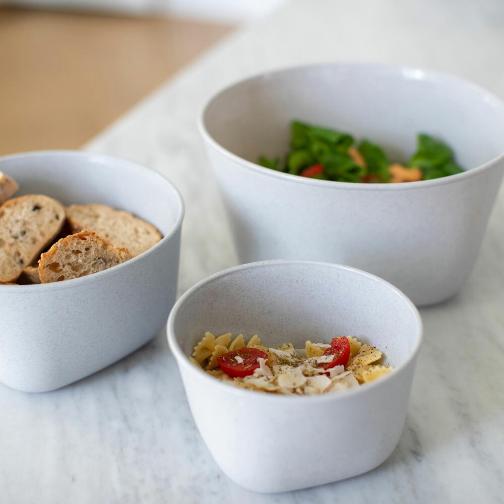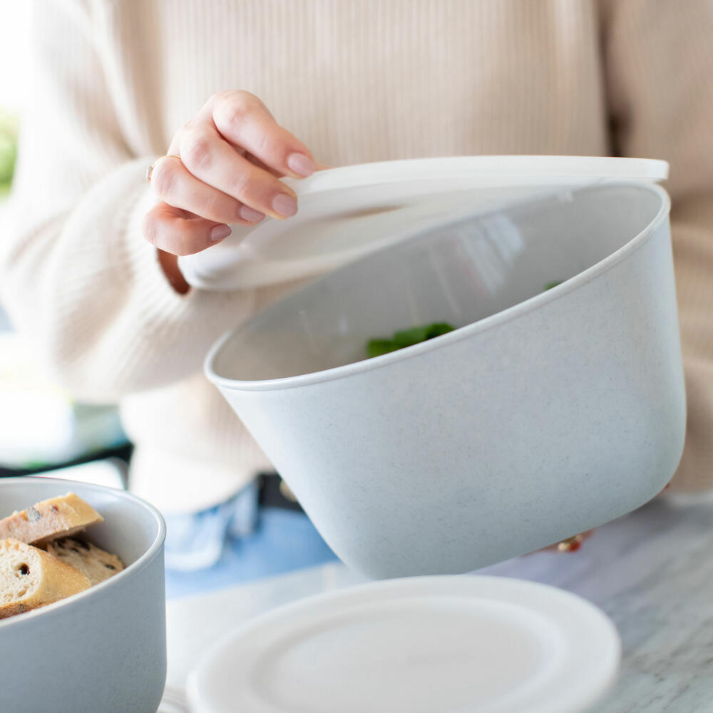 Eckig oder rund? CONNECT ist beides. Die quadratische Grundform sieht nicht nur gut aus, sondern erleichtert auch das tägliche Handling, denn sie lässt sich selbst mit nassen Händen gut festhalten. Die robuste Qualität verleiht der Schale zusätzliche Standfestigkeit. Nach oben hin läuft sie kreisrund aus und lässt sich so besonders einfach und dicht verschließen. Alles bleibt lange frisch und knackig und kann problemlos transportiert werden. Das außergewöhnliche Design und die schwere Qualität machen CONNECT zudem zur formschönen Servierschale. Alle Schüsseln sind ineinander stapelbar und nehmen so im Schrank ein Minimum an Platz ein.