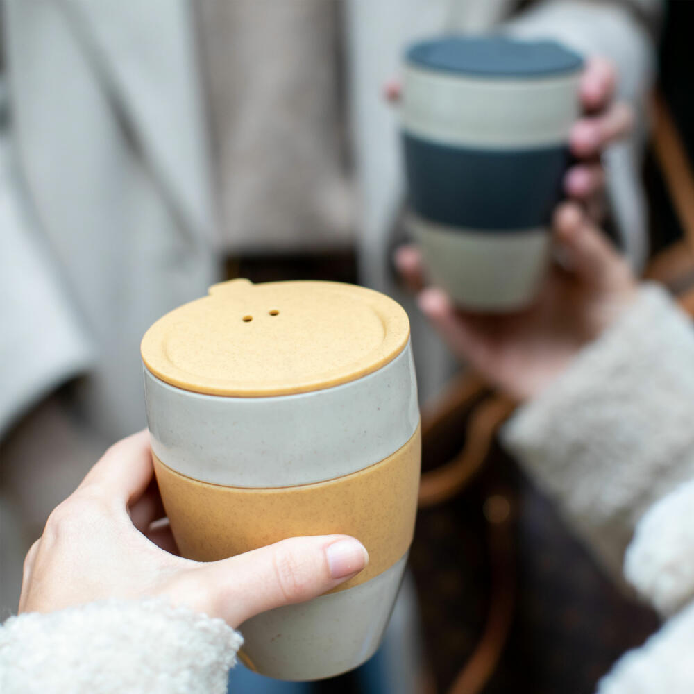 Koziol Thermobecher Aroma To Go 2.0, Isolierbecher, Biozirkulärer Kunststoff, Nature Desert Sand / Nature Coral, 400 ml, 7589273