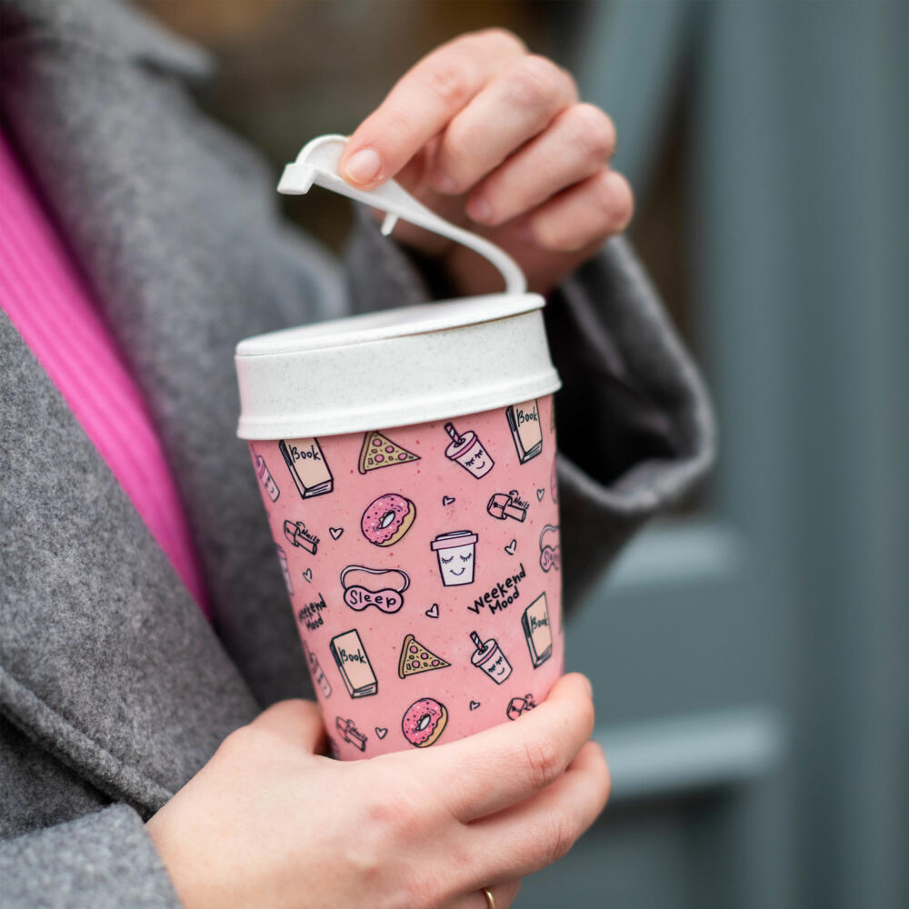 Koziol Thermobecher Iso To Go Weekend, Isolierbecher, Kunststoff, Strawberry Ice Cream, 400 ml, 8000697