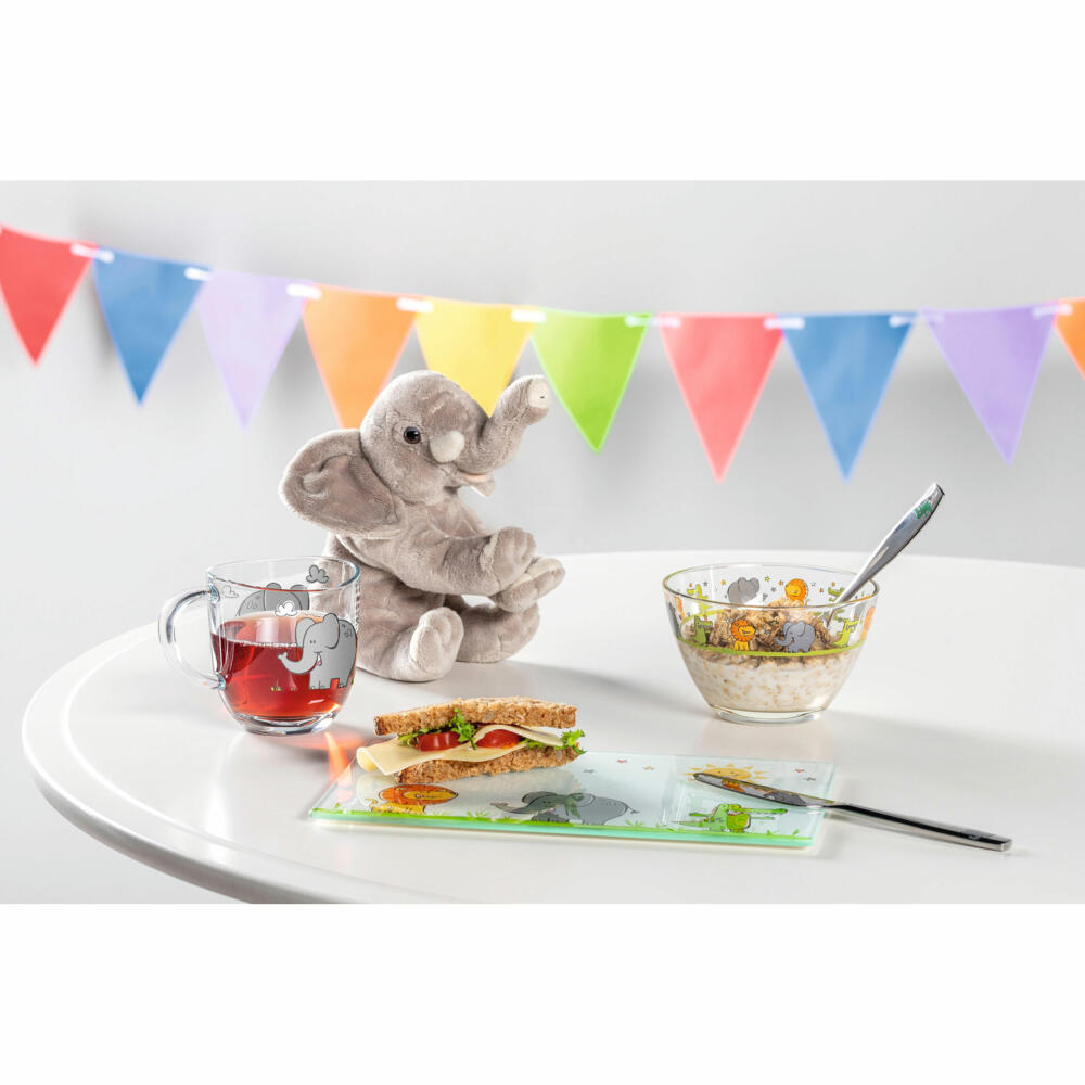Leonardo Brettchen Bambini Löwe/Elefant/Krokodil, Frühstücksbrettchen, Brett, Kalk-Natron Glas, mehrfarbig, 25 x 15 cm, 039200
