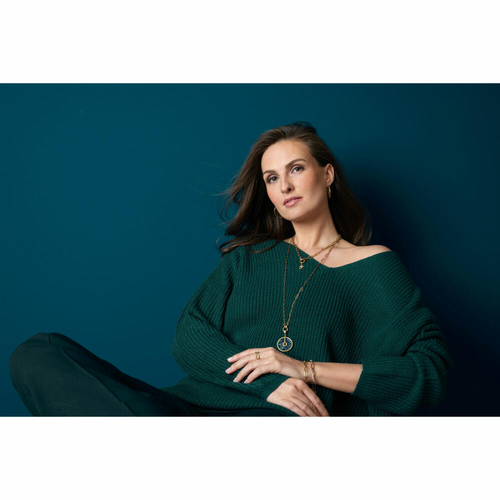 An Schlichtheit und zeitloser Schönheit ist das Armband kaum zu übertreffen. Es setzt dabei auf einen modernen Gliederketten-Look. Ein sich wiederholendes, in sich gedrehtes längliches Kettenglied gibt dem Armband sein cleanes Design. Mit einem Karabinerverschluss und der Verlängerungskette ist ein perfekter Sitz des Armbandes gesichert.