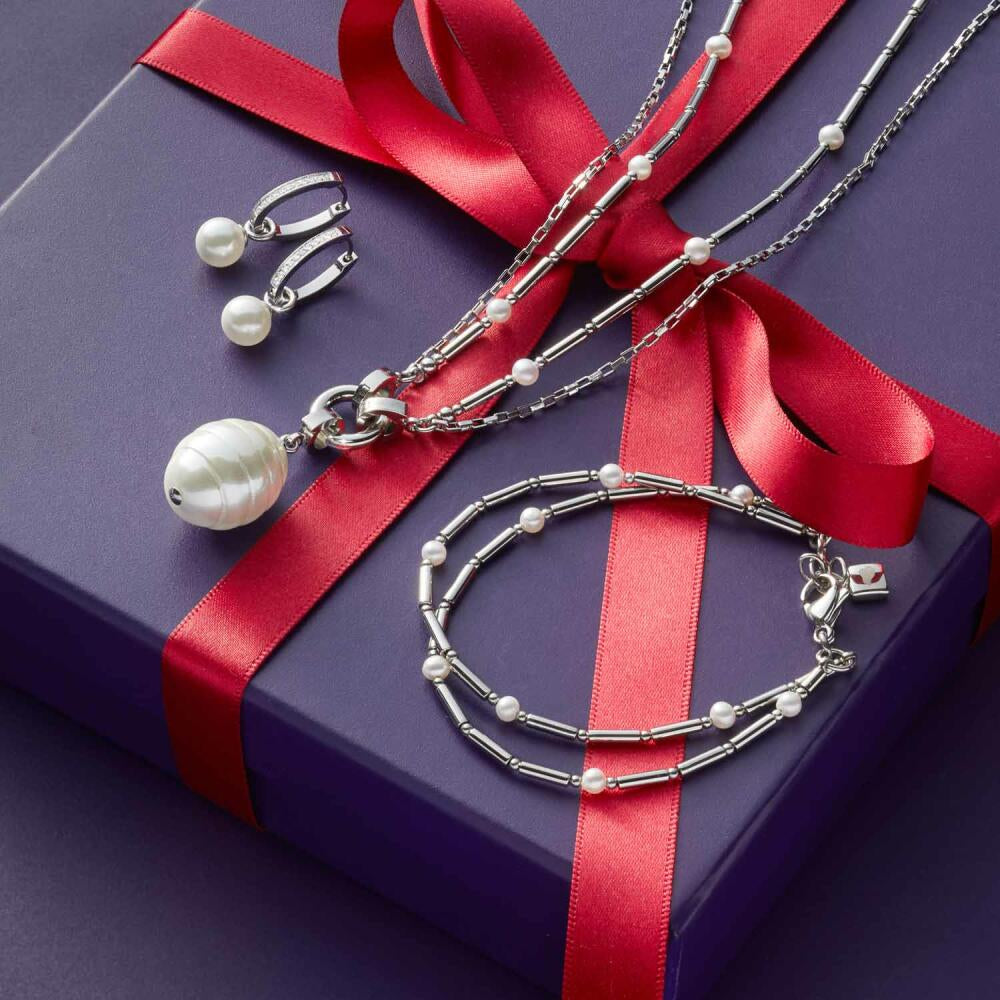 Auch das Armband zu der passenden Halskette Mirella setzt auf eine grafische Mixtur aus Linien und Kurven. Aneinandergereihte Edelstahl-Stäbchen, winzige Süßwasser-Zuchtperlen und Mini-Edelstahl-Kügelchen formen sich zu einem unkonventionellen Schmuckstück für außergewöhnliche Looks.