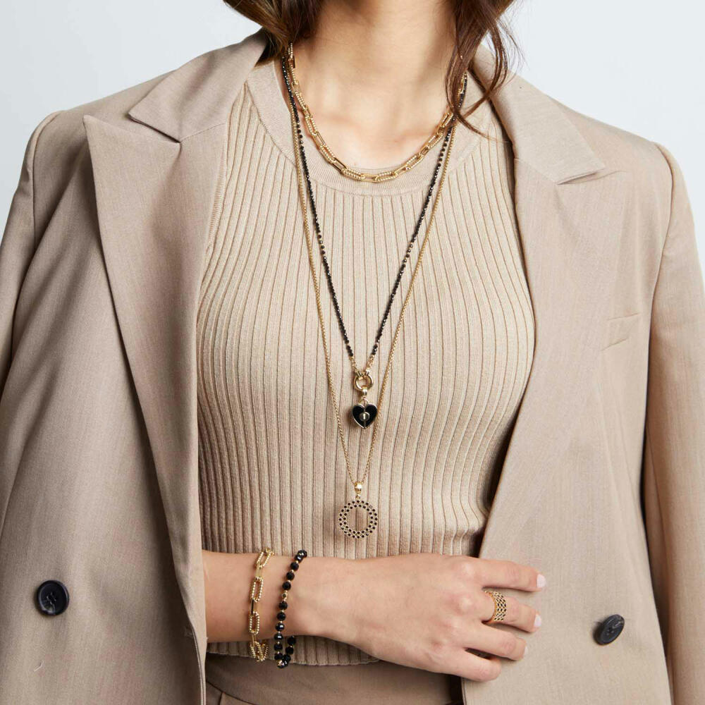 Geschmackvoll opulent! Dieses Armband setzt ein ausdrucksstarkes Statement und wird zum Blickfang in jedem Style. Dabei wechseln sich kurze und weite Ankerkettenglieder mit und ohne Kordelstruktur dekorativ ab. Wem es an manchen Tagen nicht opulent genug sein kann, der kombiniert die passende Halskette dazu.