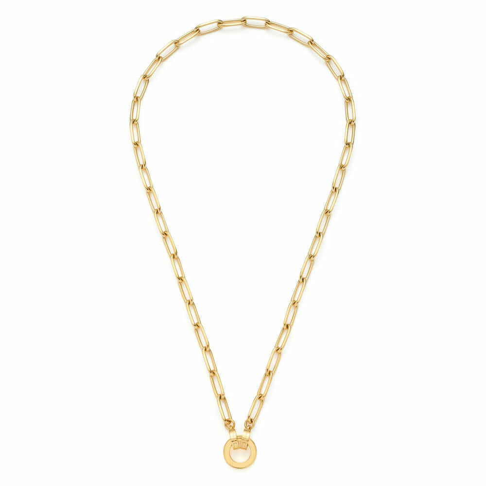 Diese Halskette hat viele Gesichter. Durch die Aufmachung der länglich gestreckten, ovalen Kettenglieder, aufgebrochen von Mini-Clips und abgerundet von einem Edelstahlring, wirkt die Kette lässig, puristisch und modern zugleich. Auch für einen rockigen Look ist dieses Schmuckstück in Kombination mit anderen Gliederketten ein super Basic. Ein Ensemble, das von einem schicken Perlen-Anhänger in modischer Twist-Manier perfekt ergänzt wird.