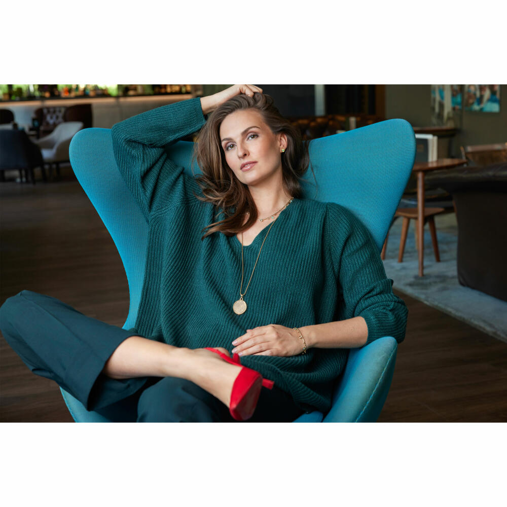 Wenn es um modernes Design, edle Materialien und coole Details geht, liegt die Kette ganz weit vorne. Die lange Ankerkette zeigt sich mit einem großen, runden Anhänger. Dieser begeistert mit einem kleinen Geschicklichkeitsspiel. In dem Anhänger mit Uhrenglas können fünf kleine Perlen durch ein Labyrinth in die Mitte geführt werden. Abgerundet wird der stilvolle Look der Kette mit kleinen, funkelnden Zirkonia Steinchen an den Wänden des Labyrinths. Als Aufhängung dient ein Clip Größe M und schließen lässt sich die Kette dank des Karabinerverschlusses und der Verlängerungskette besonders variabel.