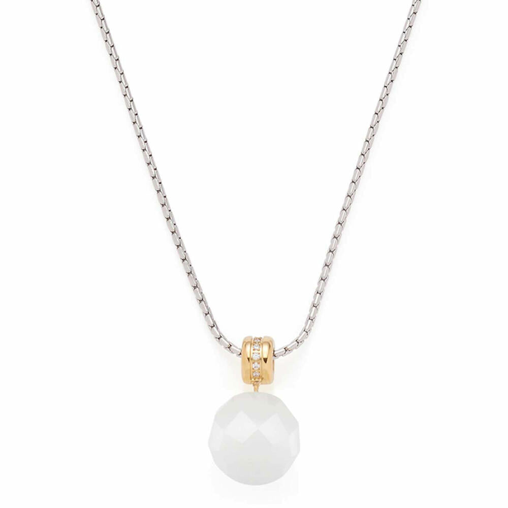 Eleganz wurde hier in ein zeitlos schönes Schmuckstück gefasst. Die mittellange Rund-Ankerkette mit Karabinerverschluss und Verlängerungskettchen ist die Trägerin eines opulenten Catseye-Kugel-Anhängers, dessen golden ionenplattiertes Rondell mit eingefassten, klaren Zirkonias besetzt ist. Der Facettenschliff von Perle und Steinchen verleiht dem Anhänger ein schönes Funkeln.