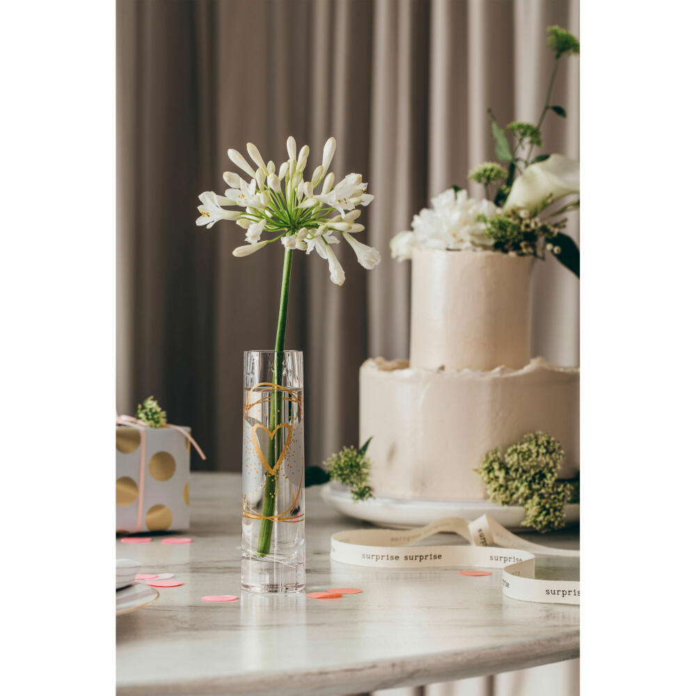 Verschenke zur bestandenen Prüfung, zum Geburtstag oder zur Hochzeit ein kleines Blümchen aus deinem Garten oder von deinem Lieblingsblumenladen um die Ecke! Die goldenen Elemente im Dekor sind dabei echte Hingucker, die zum Highlight auf dem Geschenketisch werden. Die liebevoll gestaltete Banderole nimmt dir das lästige Verpacken ab - so ist die Emozione Solifleurvase bereit deinen Liebsten viel Freude zu schenken!