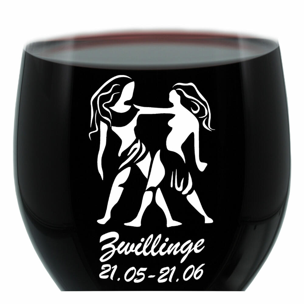 Leonardo Weinglas 400 ml, Motivglas, Sternzeichen Zwillinge, Geschenk, Stimmungsglas mit Gravur, Moodglas, 22 cm