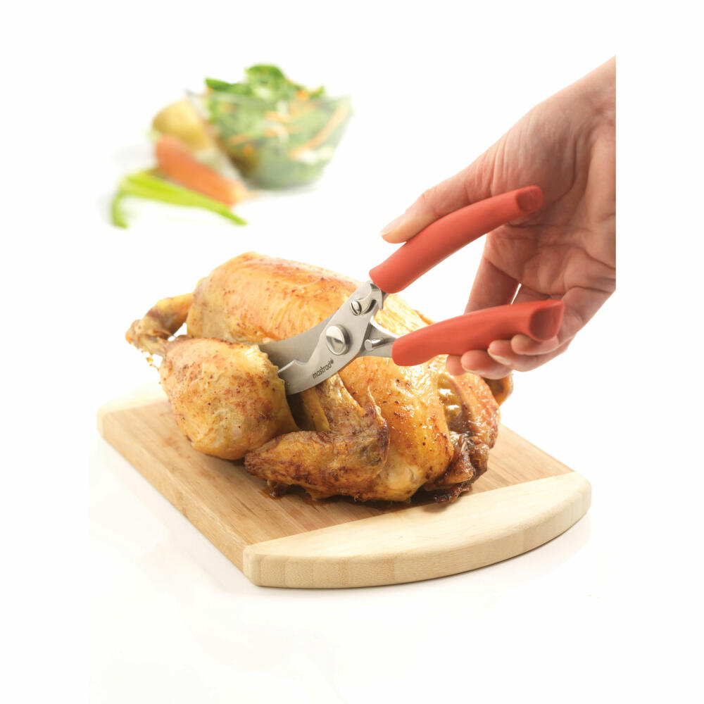 Mastrad Geflügel- und Pizzaschere, Geflügelschere, Bratenschere, Vogelschere, Inox-Stahl, TPR, Rot, F24315