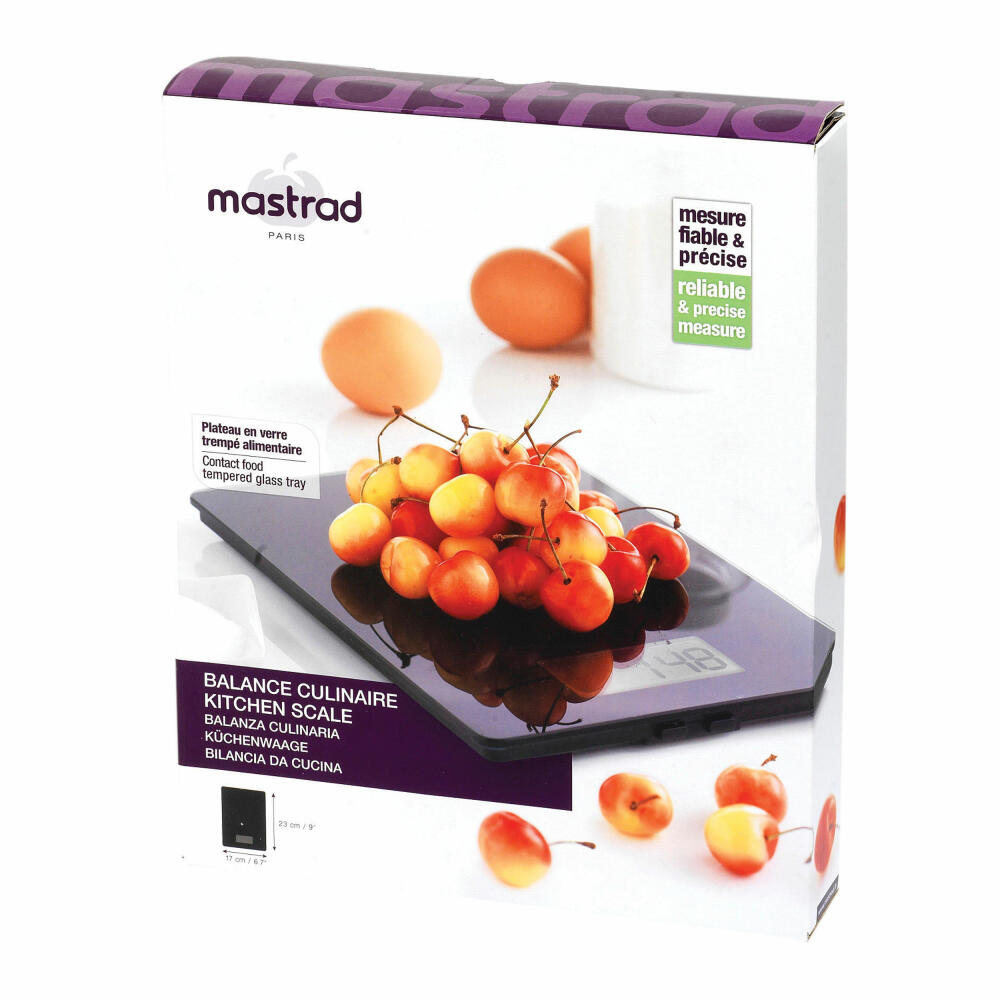 Mastrad Küchenwaage Glas, Glaswaage, Zutatenwaage, Waage, Glas, Schwarz, F76600